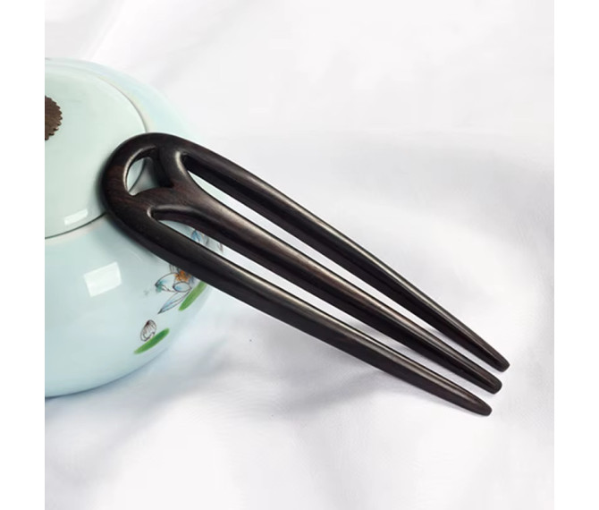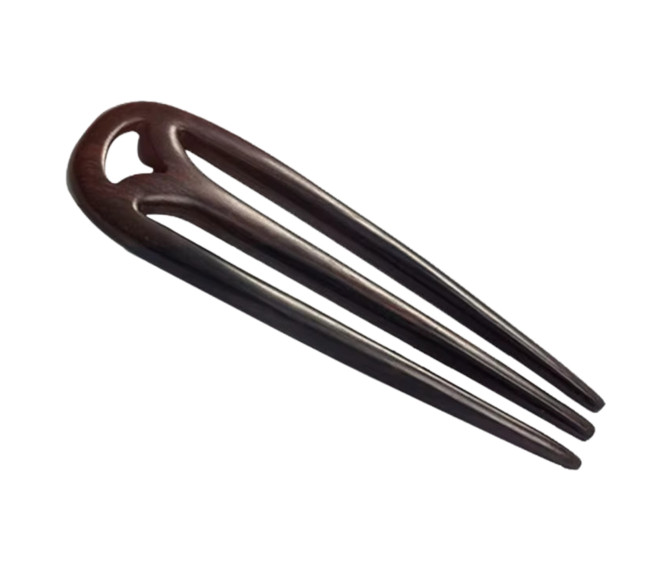 Add an elegant touch to your hairstyling routine with this beautifully crafted three-pronged wooden hair fork. Made from premium dark brown wood, this traditional hair pin combines timeless design with practical functionality. The smooth, polished surface glides easily through your hair, while the three prongs provide secure hold for various hairstyles from simple buns to elaborate updos. The classic U-shaped top offers a comfortable grip for easy insertion and removal. Perfect for medium to long hair, this versatile styling tool helps create sophisticated looks without damaging your hair like elastic bands might. Each hair fork is handcrafted with attention to detail, making it both a practical accessory and an artisanal piece. The natural wood construction is gentle on your hair while maintaining durability for long-lasting use. Whether you're dressing up for a special occasion or looking for an everyday hair solution, this traditional wooden hair fork delivers both style and substance.