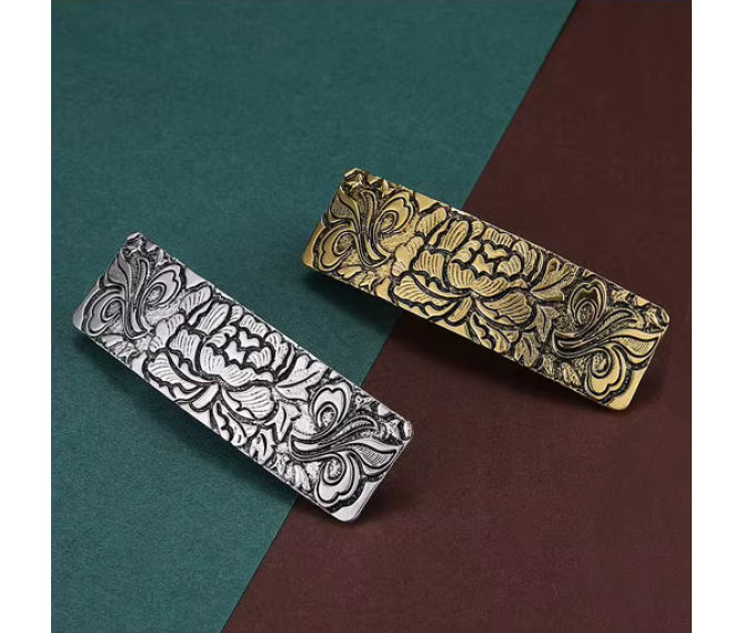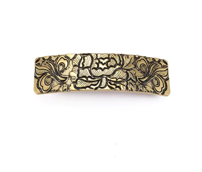 Vintage Style Hair Barrette Embossed Floral Pattern
